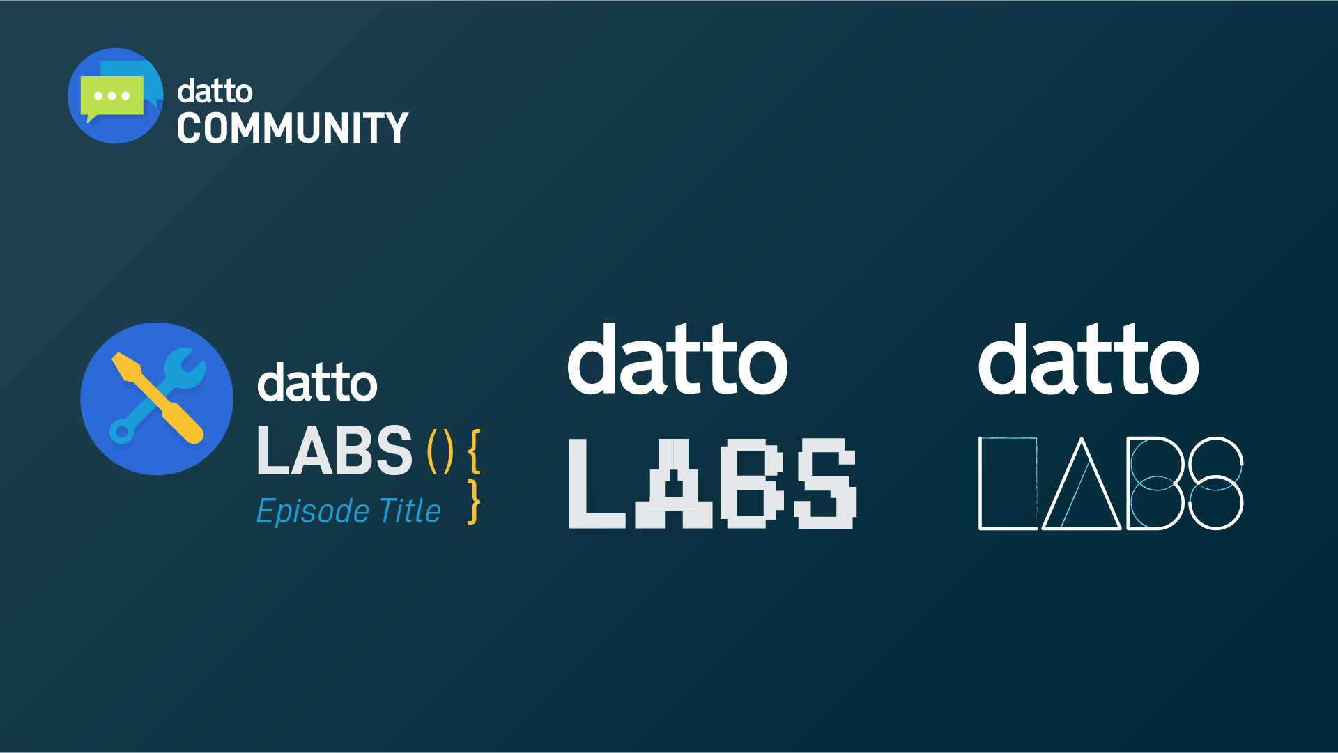 The first concept matched similar logo layouts of other video series, such as the “Datto Community” logo in the top left of the example. However, I chose iconography that reflected development tools figuratively and literally, creating a type layout that recalled how a function might be formatted in a piece of code.